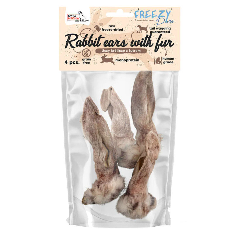 Jeśli chcesz połączyć naturalność, funkcjonalność i przyjemność żucia, liofilizowane ucho królicze z futrem od Sytej Michy jest jednym z najbardziej wszechstronnych i nowoczesnych przysmaków, jakie możesz zaproponować swojemu psu – w pełni wpisującym się w aktualne trendy żywienia funkcjonalnego i rekomendacje specjalistów żywienia.