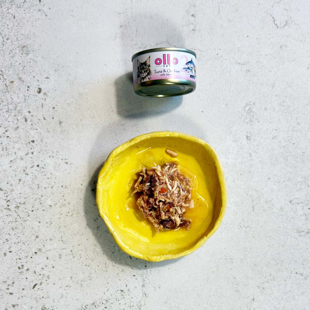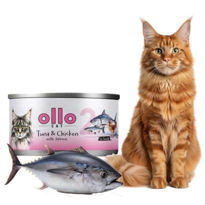 OLLO CAT Nr 2 Tuńczyk i Kurczak z Łososiem w Sosie Własnym 70 g to pełnowartościowa, mokra karma stworzona z myślą o wymagających kotach. Łączy w sobie naturalne kawałki tuńczyka i delikatnego kurczaka wzbogacone o aromatycznego łososia, zanurzone w własnym, smakowitym sosie. Dzięki wysokiej zawartości mięsa i ryb dostarcza niezbędnych białek, kwasów tłuszczowych Omega-3 oraz wartościowych składników odżywczych, wspierając zdrowie skóry, lśniącą sierść i prawidłową kondycję kota. Lekka receptura, pozbawiona sztucznych dodatków, sprzyja dobremu trawieniu i stanowi doskonały wybór nawet dla wybrednych pupili.