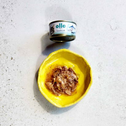OLLO CAT Nr6 Tuńczyk i Krab w Sosie Własnym 70g to karma dla kotów, która jest naturalną, kompletną karmą z wysokiej jakości, starannie dobranych filetów z tuńczyka i kraba. Karma ta jest gotowana na parze i przechowywana w galaretce warzywnej, dzięki czemu jest wolna od dodatków i konserwantów, bogata w szlachetne białko oraz cenne kwasy tłuszczowe omega-3, a jednocześnie uboga w węglowodany.