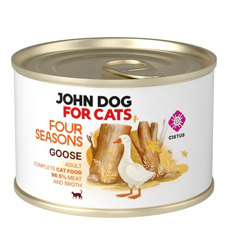 Marka John Dog for Cats to gwarancja najwyższej jakości składników oraz starannie opracowanych receptur dostosowanych do naturalnych potrzeb twojego kota. Marka koncentruje się na tworzeniu odpowiednio zbilansowanych karm dla kotów, które łączą doskonały smak z pełnowartościowym żywieniem. Seria Four Seasons to linia karm z sezonowymi kompozycjami inspirowanymi porami roku. Każdy produkt z tej serii charakteryzuje się wysoką zawartością składników mięsnych z dodatkiem naturalnych składników o właściwościach prozdrowotnych. Każda karma z tej linii jest produkowana w Polsce zgodnie z najwyższymi standardami jakości.
