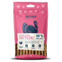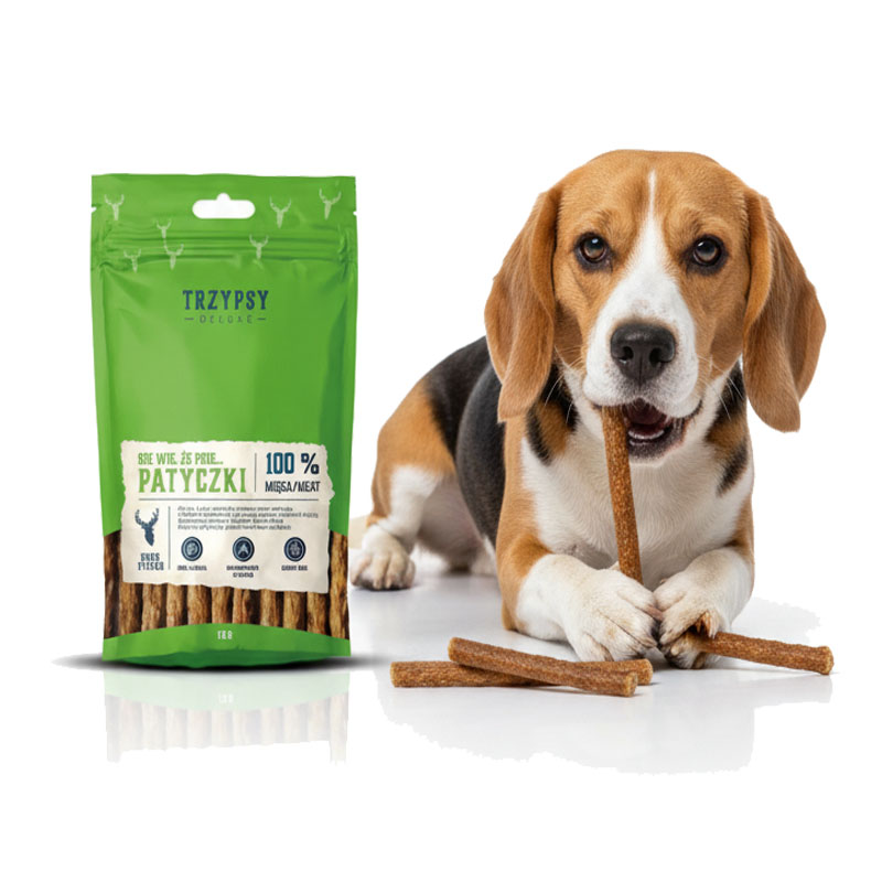 🐶W pełni naturalne, miękkie przysmaki dla psów, wyprodukowane ze 100% mięsa w formie patyczków. Jeden patyczek ma około 11,5 cm długości i jest bardzo łatwy do podzielenia. Nie zawierają konserwantów, barwników, sztucznych wypełniaczy. Przysmak jest niezwykle aromatyczny i pożywny, stanowi doskonałe uzupełnienie codziennej diety każdego pupila. Idealnie sprawdzą się jako nagroda.