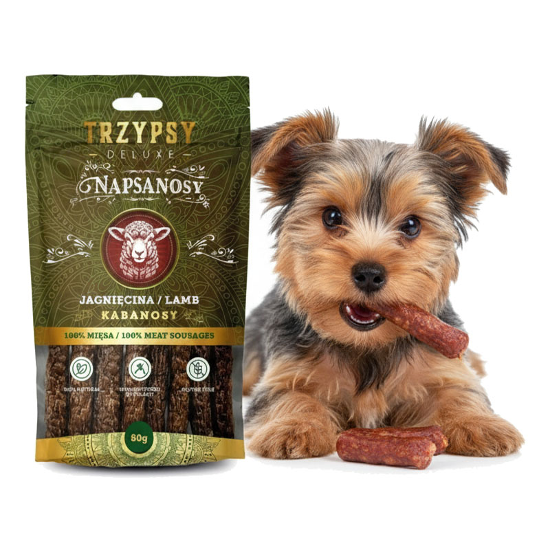 🐶Trzypsy Napsanosy to pyszne kabanosy wykonane ze 100% mięsa, są zdrowym i naturalnym przysmakiem. Staranna selekcja wybranych mięs i delikatny proces suszenia zapewniają wyjątkową ucztę dla najbardziej wymagających pupili.