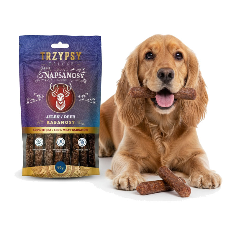 🐶Trzypsy Napsanosy to pyszne kabanosy wykonane ze 100% mięsa, są zdrowym i naturalnym przysmakiem. Staranna selekcja wybranych mięs i delikatny proces suszenia zapewniają wyjątkową ucztę dla najbardziej wymagających pupili.