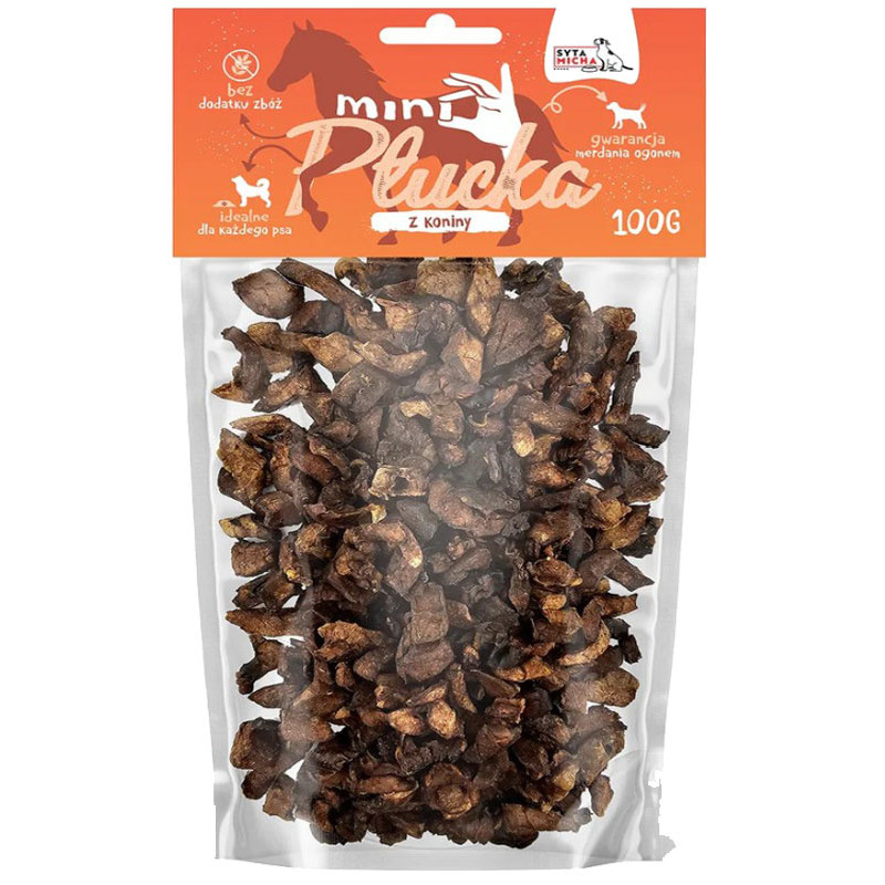 Mini płucka z koniny od Sytej Michy to 100% naturalne przysmaki dla psów promujące zdrowie i dobre samopoczucie każdego dnia.