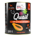 Larwy Hermetia illucens 47%, bataty 20%, jabłka 7,5%, truskawki 7,5%, gliceryna roślinna, minerały.