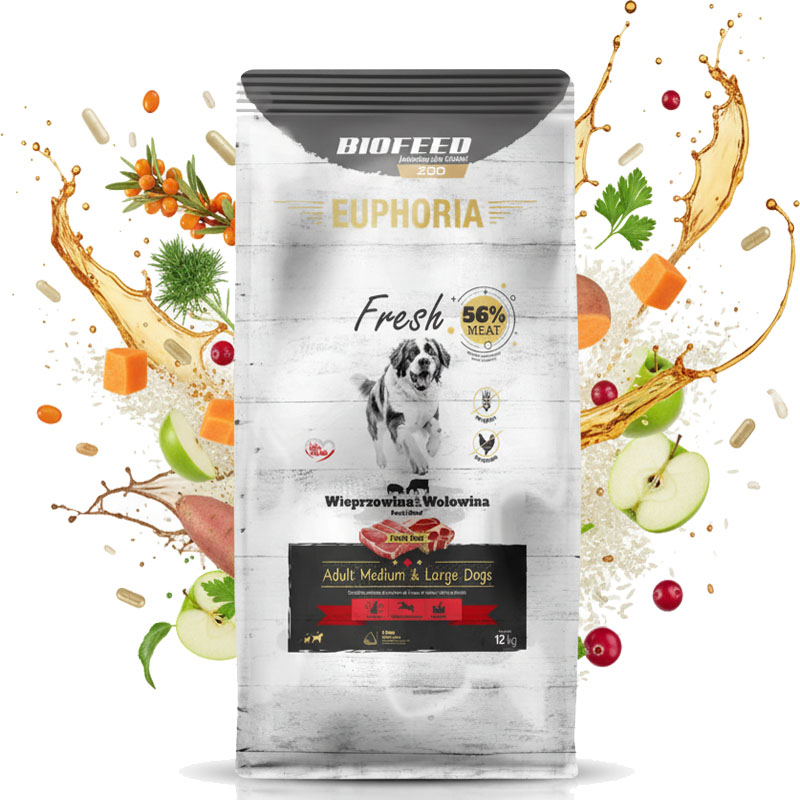 ✔️ 56% mięsa, składników pochodzenia zwierzęcego, olejów i tłuszczów zwierzęcych.