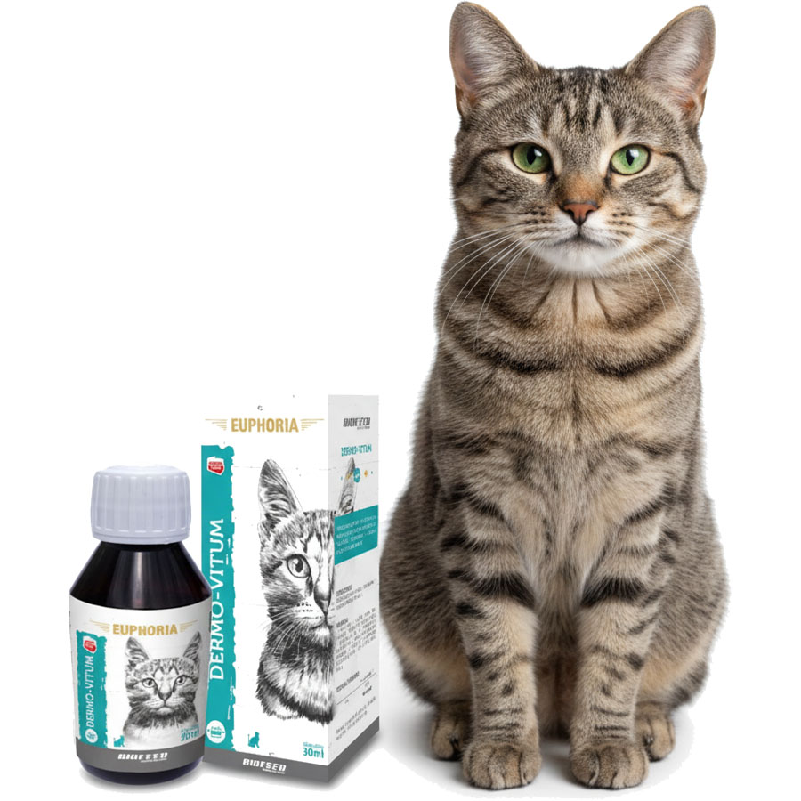 😸Preparat poprawiający stan skóry i włosa. Suplement diety w płynie Dermo-Vitum wyraźnie poprawia wygląd pokrywy włosowej oraz stan skóry. Niezastąpiony w przypadku alergii z objawami skórnymi. Przyśpiesza gojenie ran.