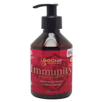 Syta Micha Immunity oil to ultra premium suplement diety dla psów 🐕🦺, który łączy moc kwasów tłuszczowych Omega-3 z sardynki 🐟 oraz olejów roślinnych o działaniu immunostymulującym i przeciwzapalnym 🌿: jeżówki purpurowej i kurkumy 🌼.
